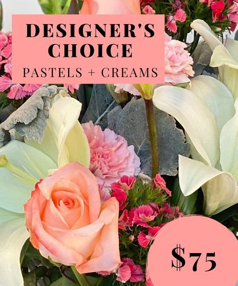 Our expert designers will hand pick fresh flowers in pastel and cream tones to create a one-of-a-kind custom arrangement.