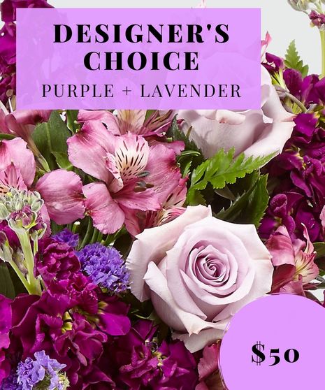Our expert designers will hand pick fresh flowers in monochromatic purple and lavender tones to create a one-of-a-kind custom arrangement.