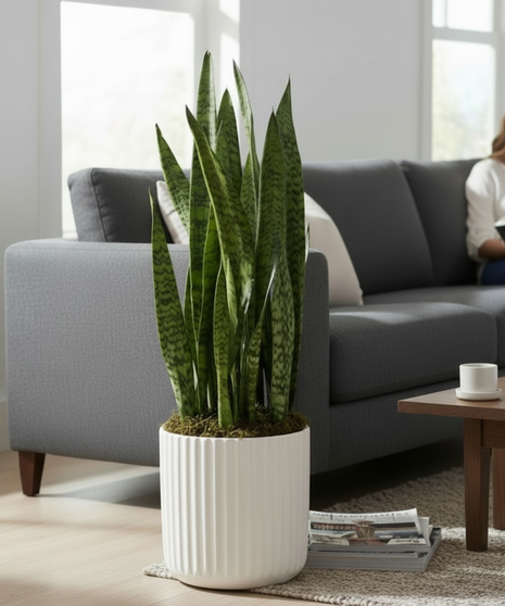 Designed in a clean, white ceramic planter, the Luma Snake Plant blends seamlessly into any interior—from bright, airy living rooms to polished office spaces. Known for its durability and low-maintenance care, it thrives in a variety of lighting conditions, making it an ideal choice for both seasoned plant lovers and beginners.