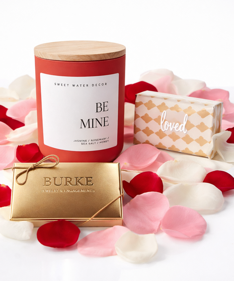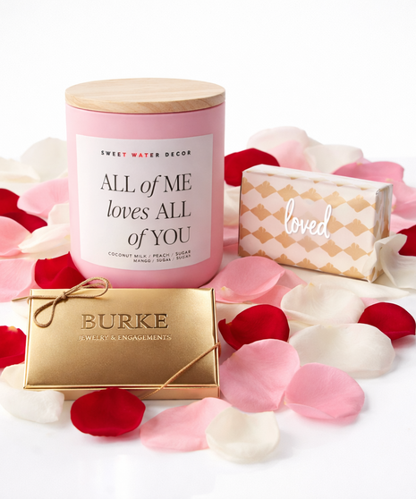 Make Valentine’s Day effortless with our Valentine Essential Gift Set, a beautifully curated collection of romantic must-haves. This charming set includes a Sweet Water Decor candle with a heartfelt message, decadent chocolates from Burke Candy, a bag of mixed rose petals, and a luxurious bar of soap—everything needed to create a truly love-filled moment.